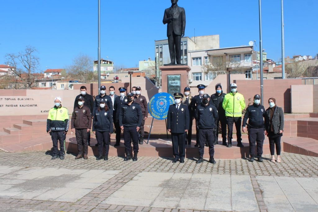 Kutlamalar çerçevesinde Ezine Emniyet Müdürlüğü Teşkilatlarının 176. kuruluş yıl dönümünde Emniyet Müdürü Ömer YILDIZ polis ve bekçilerle birlikte Atatürk anıtına çelenk koyarak saygı duruşunda bulundular.